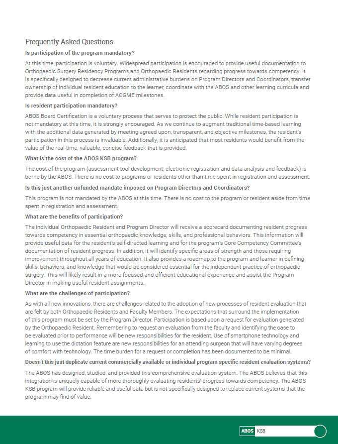 Orthopaedic Surgery faculty/attendings receive Surgical Skills and Professional Behavior Assessment requests from residents. They can choose to receive these requests through email or through text. The assessments take less than 2 minutes to complete, and evaluators can dictate feedback to accompany their numerical evaluations. Faculty do not have a username or password they must remember; they just click on the link they received through email or text and then complete the assessment. ABOS Diplomates who serve as faculty may be able to earn ABOS SAE credits for completing ABOS Surgical Skills Assessments and for participating in the ABOS KSB Learning Module. Learn more about this new opportunity.