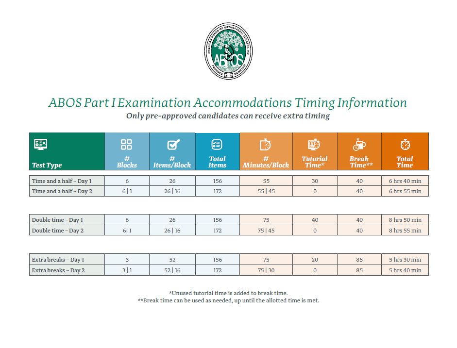Home Certification Part I Accommodations Part I Examination Timing Information